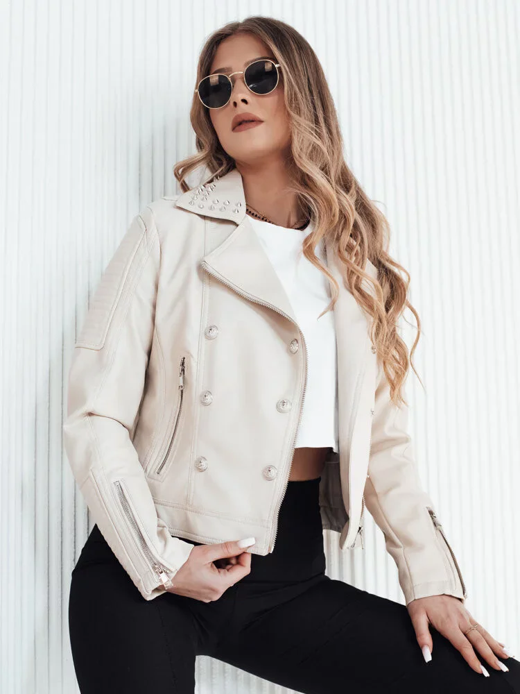 Béžová koženková bunda s hrotmi a ozdobnými gombíkmi TRUCCO TY4179 Veľkosť: M býva často skladom v Londonclub.sk.