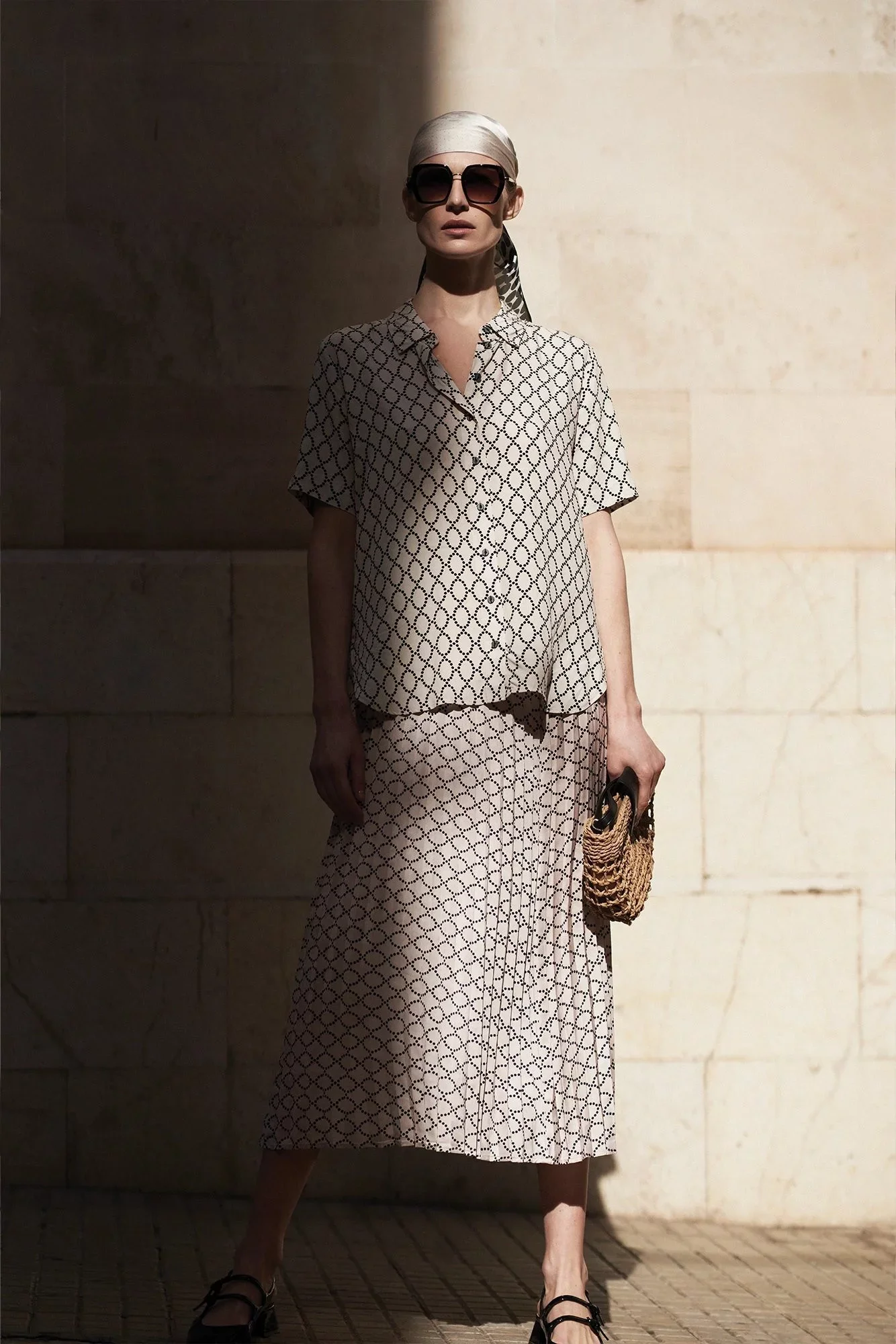 Dámska maxi sukňa v béžovej farbe s nariasením, vyrobená z vysoko kvalitného materiálu a navrhnutá podľa najnovších módnych trendov.Maxi sukňa z mäkkej a príjemnej látky.Nariasenie od pása dole ukončené výrezom...