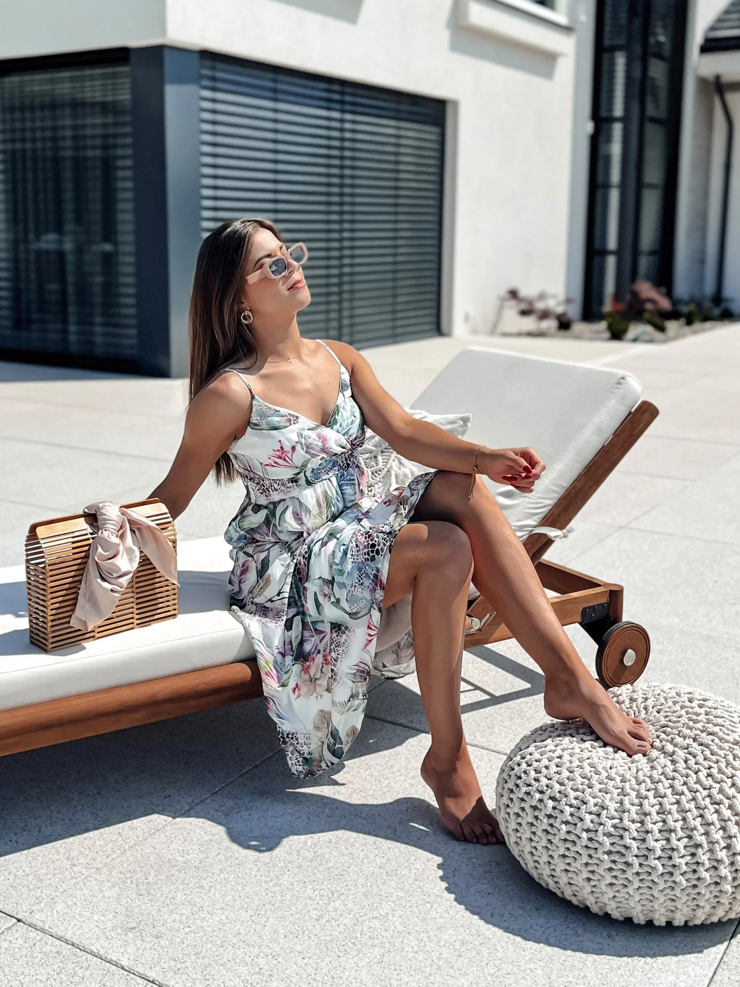 Biele kvetinové midi šaty SERENA EY2530 Veľkosť: XS býva často skladom v Londonclub.sk.