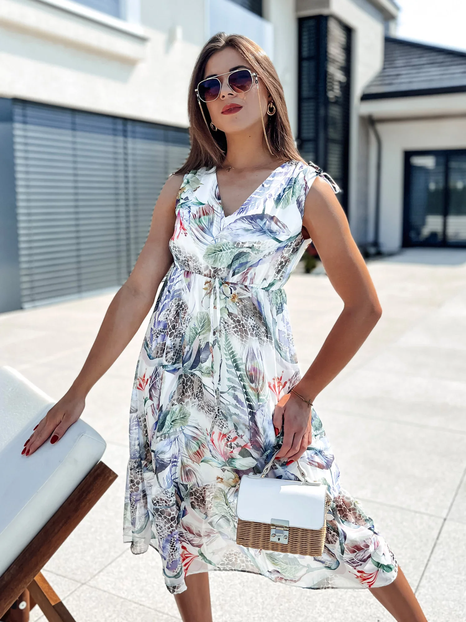 Vyskúšajte Biele midi šaty s farebnými vzormi ROSALIE EY2529 Veľkosť: S za atraktívnu cenu v Londonclub.sk.