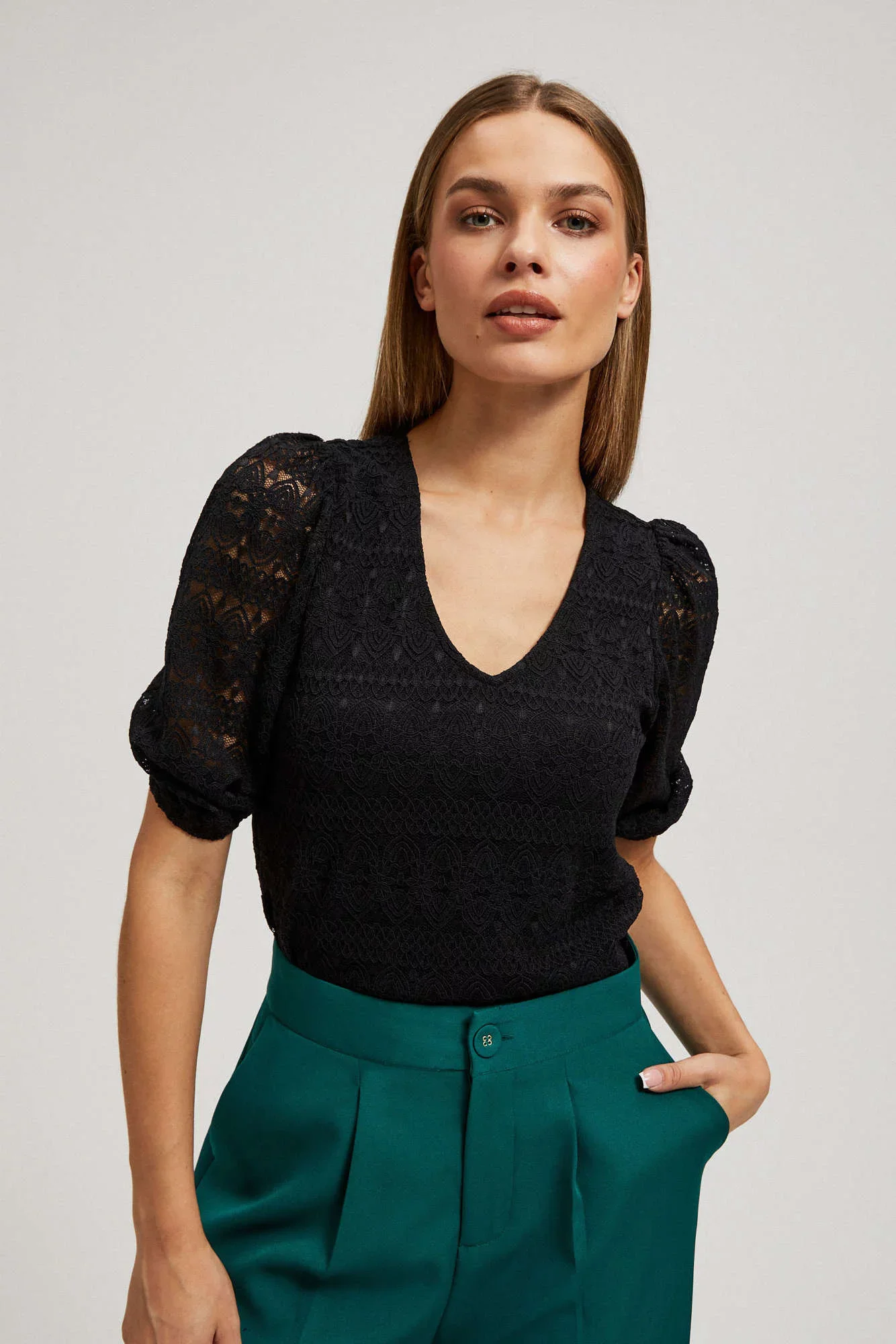 Modelka na obrázkoch je vysoká 174 cm, obvod cez prsia 82 cm, obvod pása 62 cm a bokov 89 cm. Modelka je oblečená do veľkosti S. Materiál: 30% bavlna, 30% polyester, 30% асетат, 10% elastan.