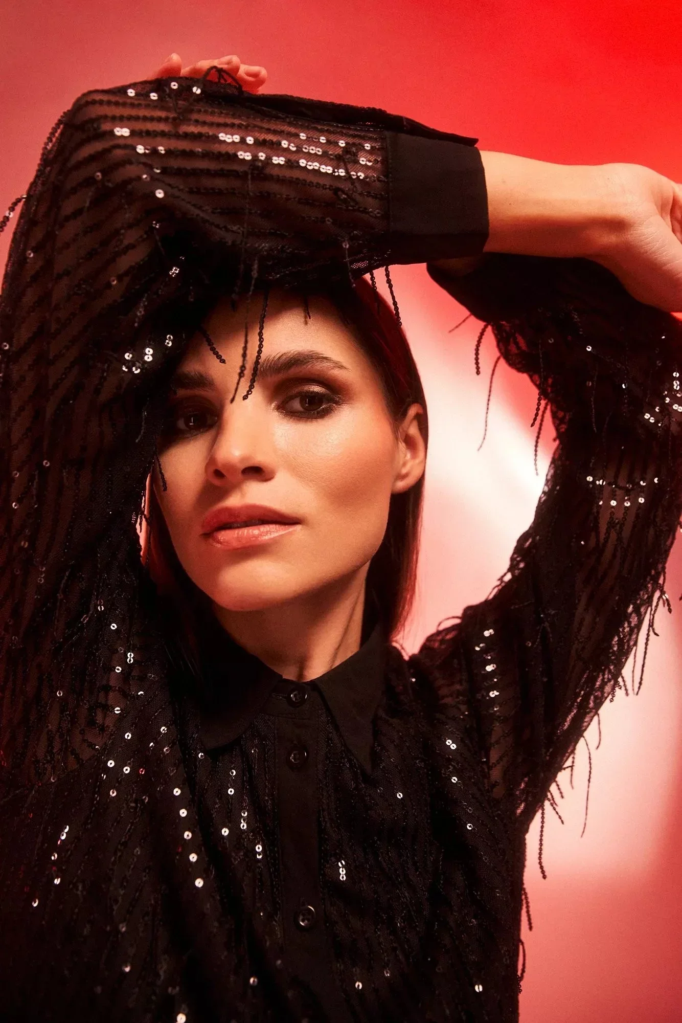 • Modelka na obrázkoch je vysoká 174 cm, obvod cez prsia 82 cm, obvod pása 62 cm a bokov 89 cm.
