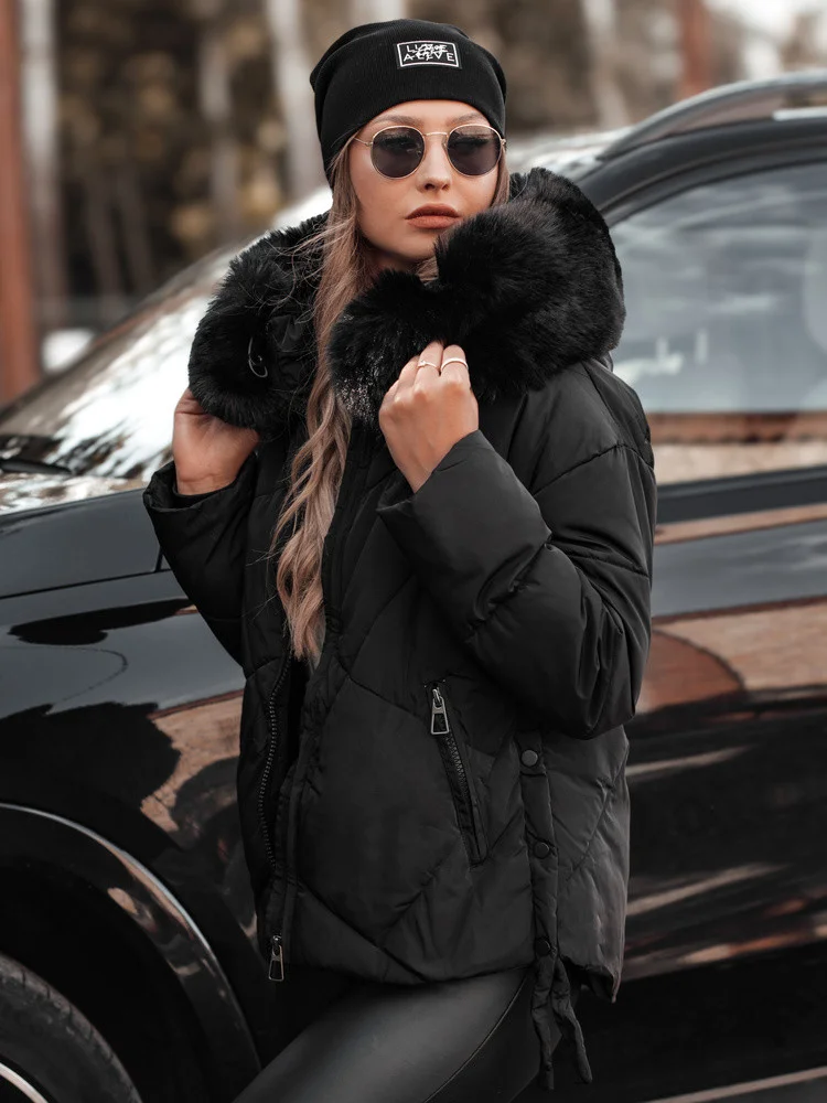 Čierna dámska zimná prešívaná bunda s kapucňou MODIVA TY4726 Veľkosť: XL