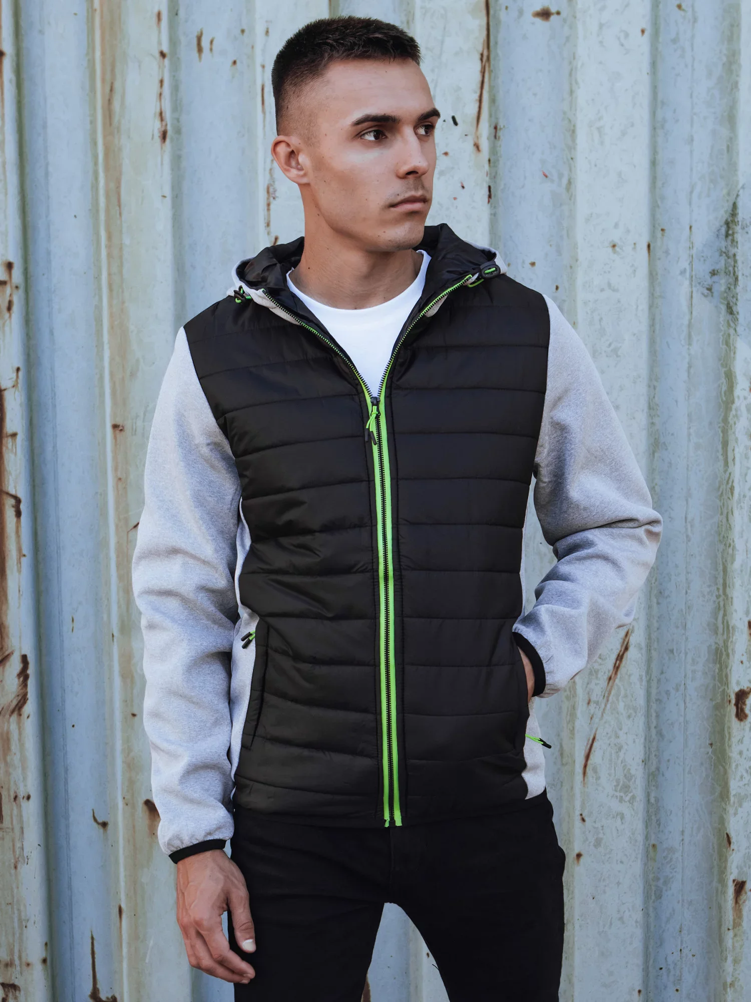 Čierno-sivá pánska prechodná bunda s kapucňou TX4862 Veľkosť: XL býva často skladom v Londonclub.sk.