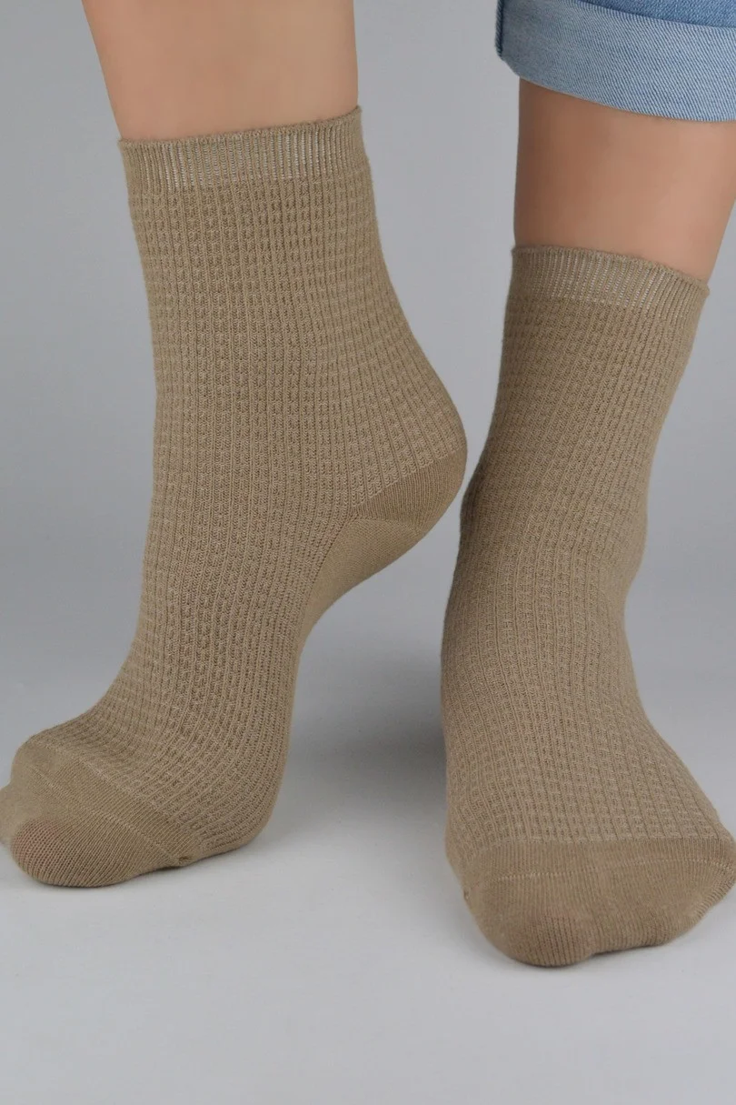 Dámske ponožky s potlačou zeleniny. Model je vyrobený z kvalitnej bavlnenej priadze. Ponožky sú ideálne ako darček. Zloženie: 80% bavlna, 15% polyamid, 5% elastan.