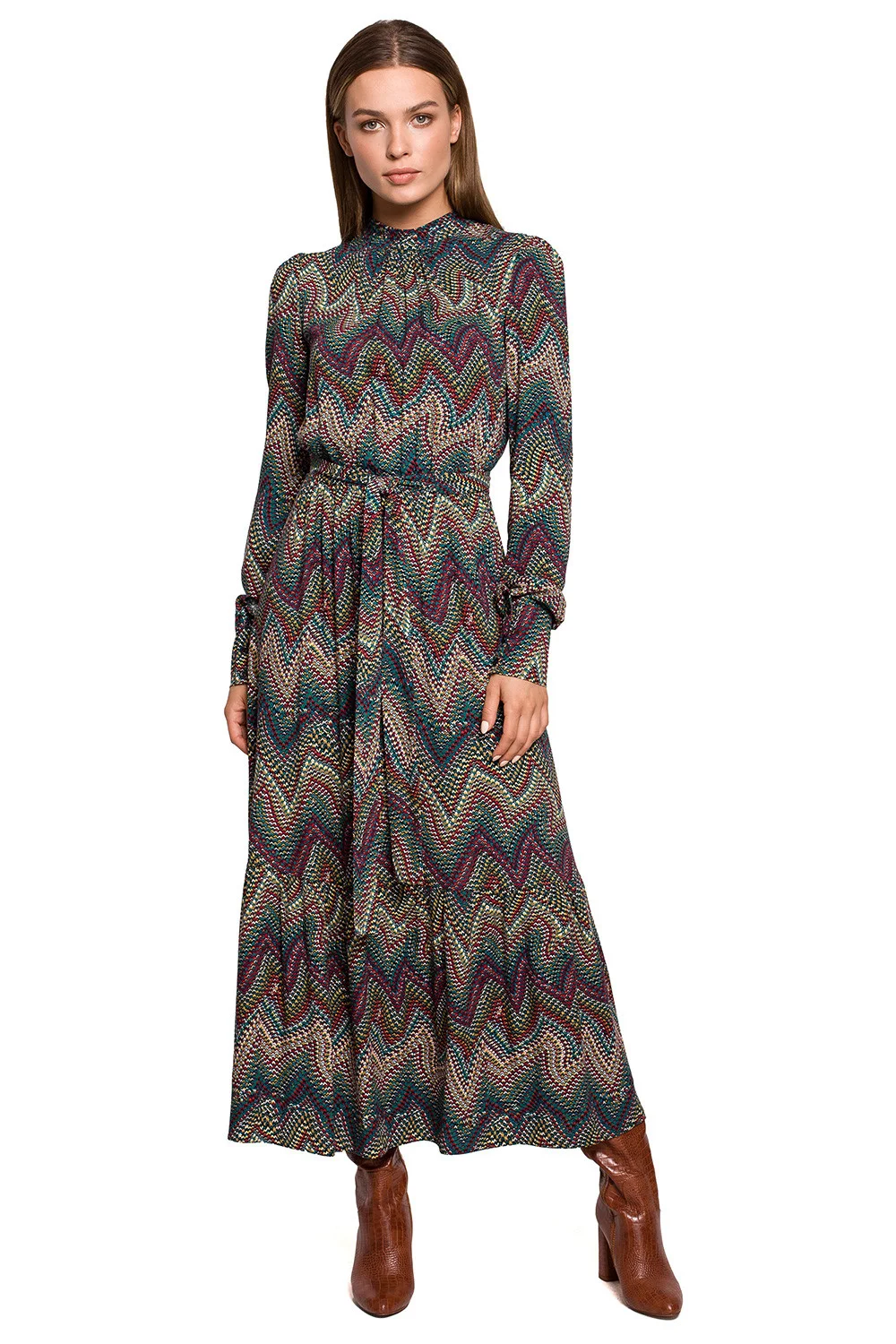 Maximálne pohodlie, maximálna elegancia v podobe maxi šiat s aztéckou potlačou, volánovým lemom a stojacím golierom. Najlepšie sa kombinujú s vysokými čižmami. Zloženie materiálu: 100 % viskóza