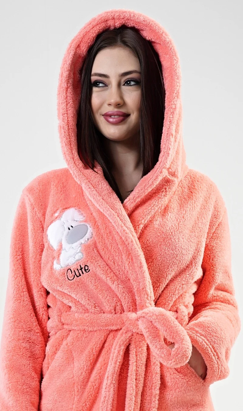Dámský kostkovaný župan v délce pod kolena, s kapsami, páskem, se šálovým lýmcem. Barvy růžová nebo žlutá. Materiál: flanel 150g/m2