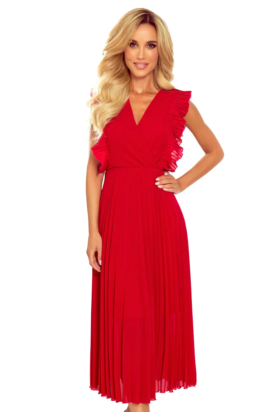 Vyskúšajte Elegantné červené šaty BRENDA s plisovanou sukňou 315-3 Veľkosť: S za atraktívnu cenu v Londonclub.sk.