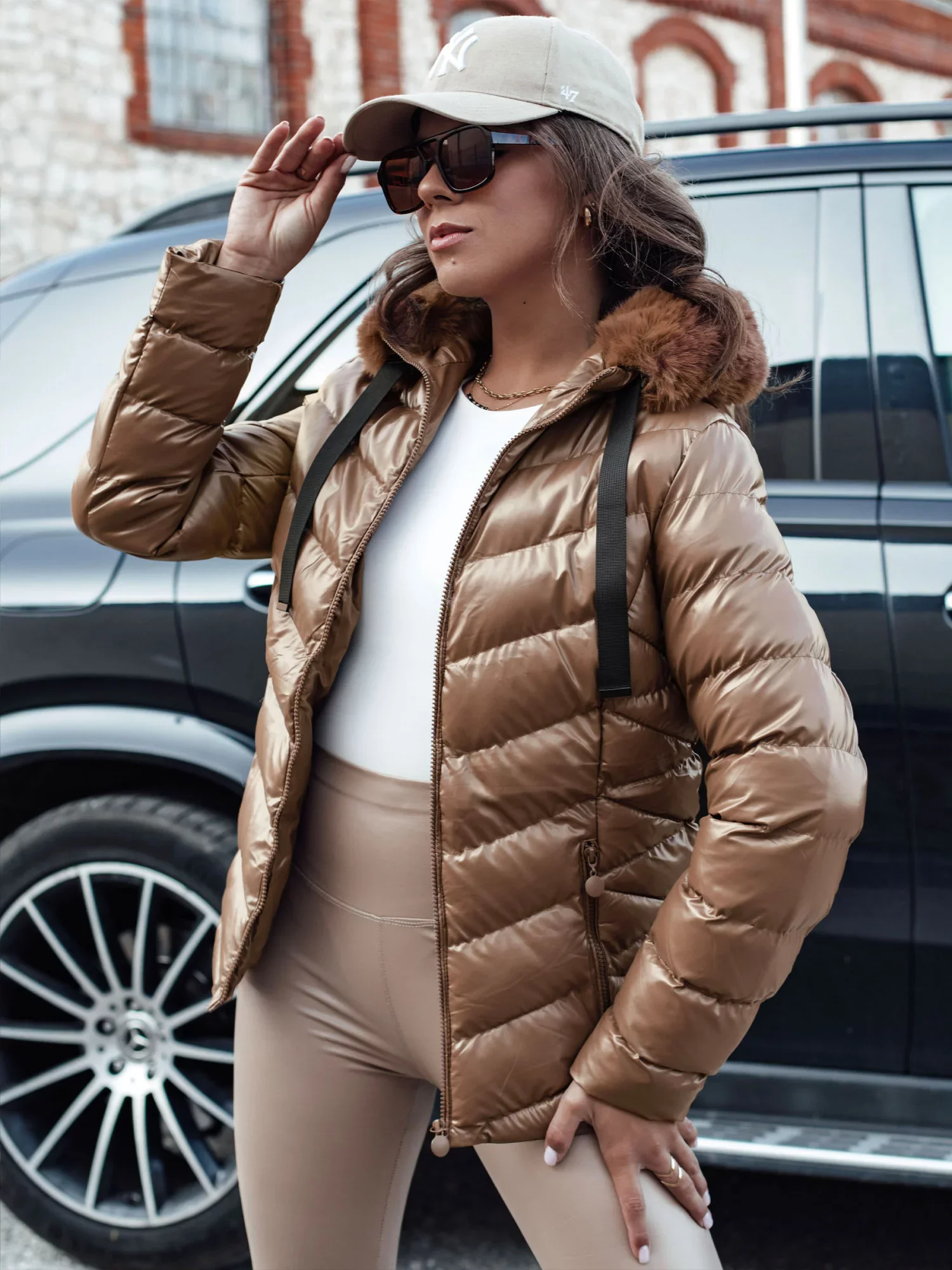 Hnedá lesklá prešívaná bunda MIRIAL TY4573 Veľkosť: XL býva často skladom v Londonclub.sk.