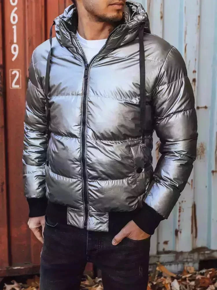 Strieborná metalická pánska zimná prešívaná bunda TX3948 Veľkosť: 2XL býva často skladom v Londonclub.sk.