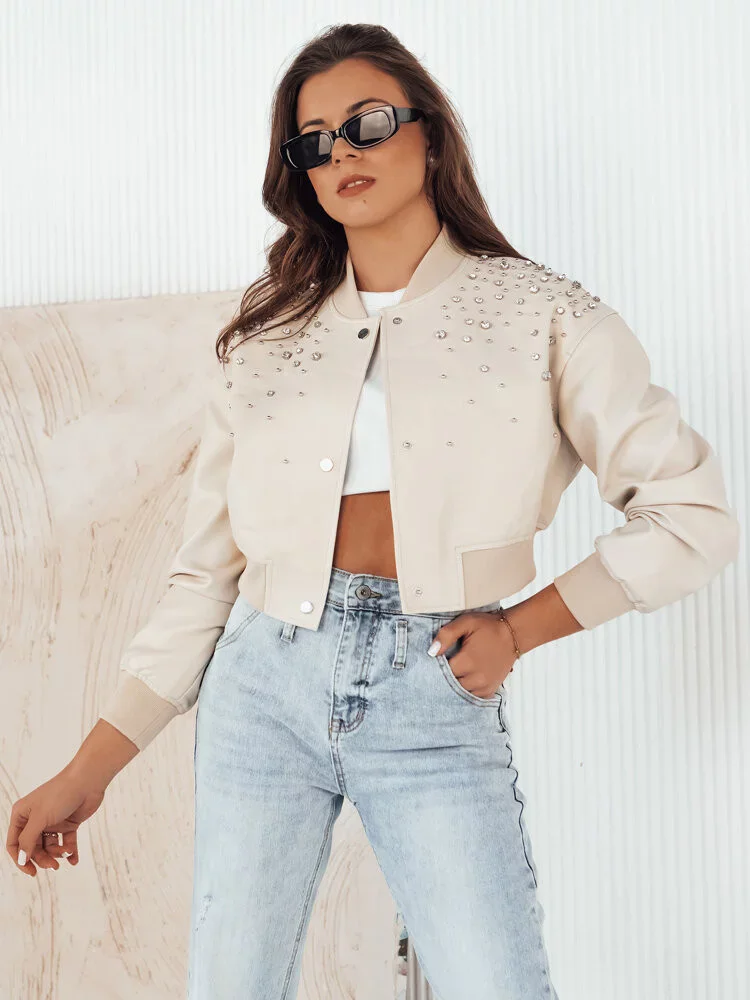 Svetlo béžová crop bunda s kamienkami PRIDA TY4265 Veľkosť: M/L býva často skladom v Londonclub.sk.