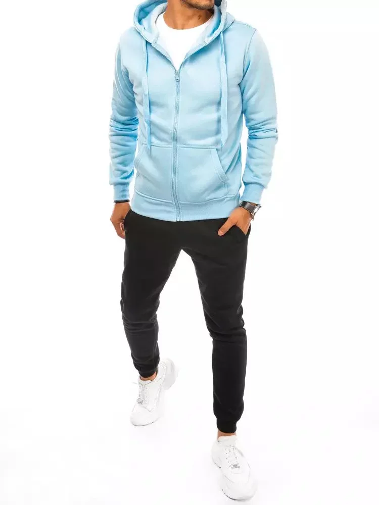 Prezrite si Svetlomodro-čierna tepláková súprava na zips AX0635 Veľkosť: L v sekcii s kapucňou a kúpte ho za 38,1 EUR u Londonclub.sk.