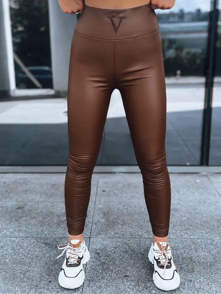 Tmavohnedé koženkové legíny s vysokým pásom VALENTIS UY1559 Veľkosť: XS
