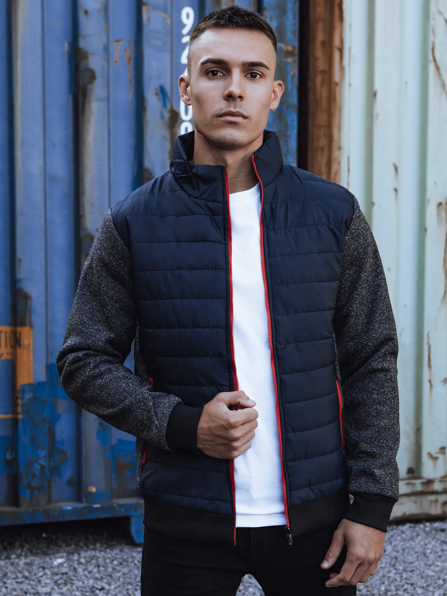 Tmavomodrá pánska prechodná bunda s červenými zipsami TX4857 Veľkosť: XL býva často skladom v Londonclub.sk.